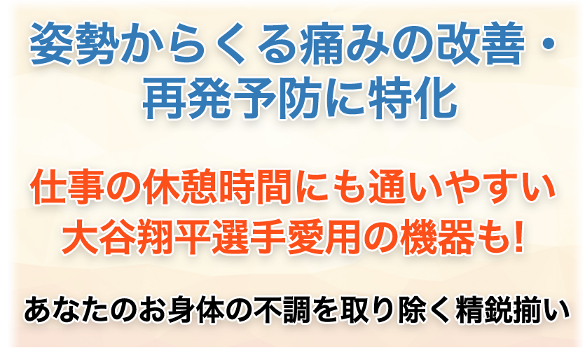 ✓ 急性期の痛みから慢性的な痛み、しびれ、けがの再発予防まで寄り添います